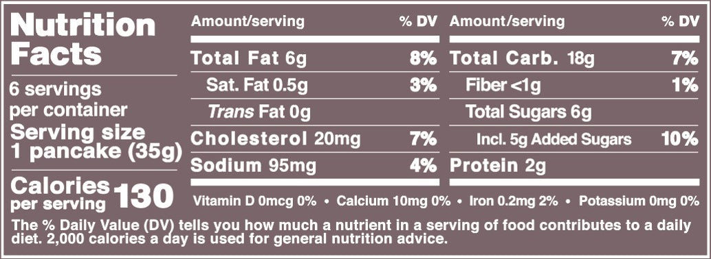 Ingredients: Wheat flour, reduced fat milk, eggs, canola oil, sugar, dried glucose syrup, glycerin, leavening (sodium acid pyrophosphate, sodium carbonate), salt.